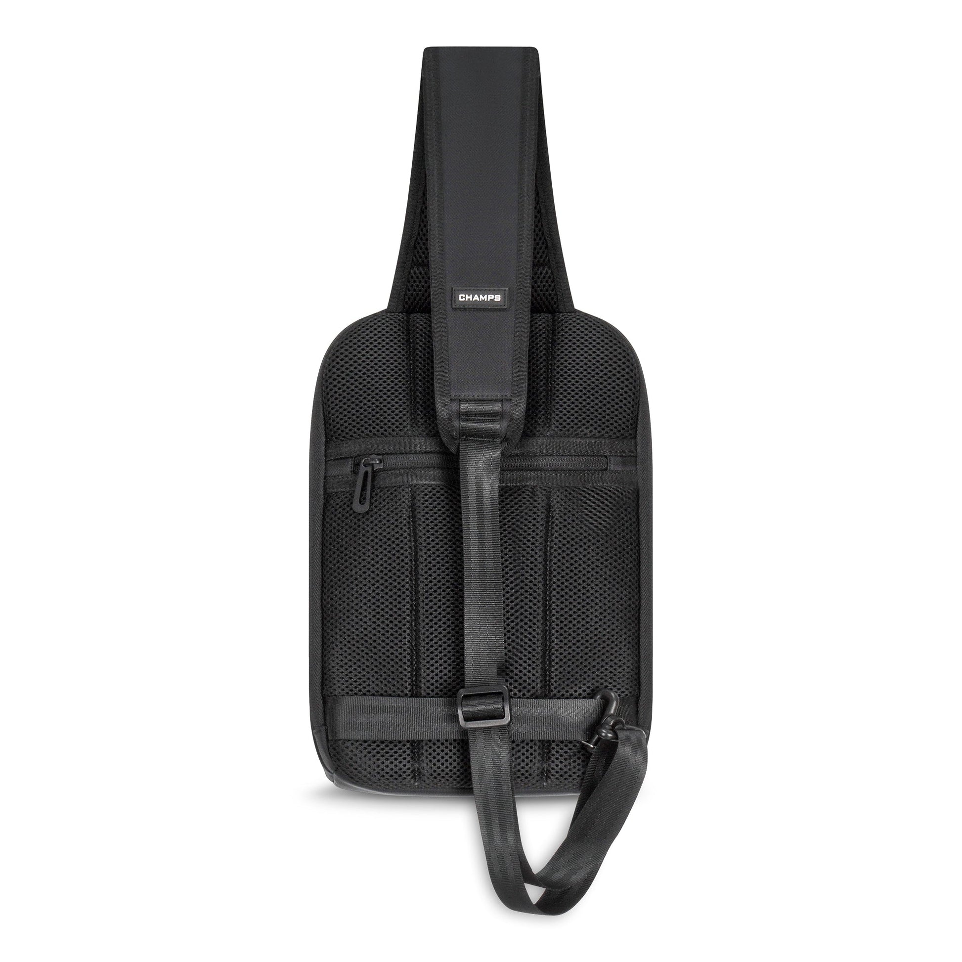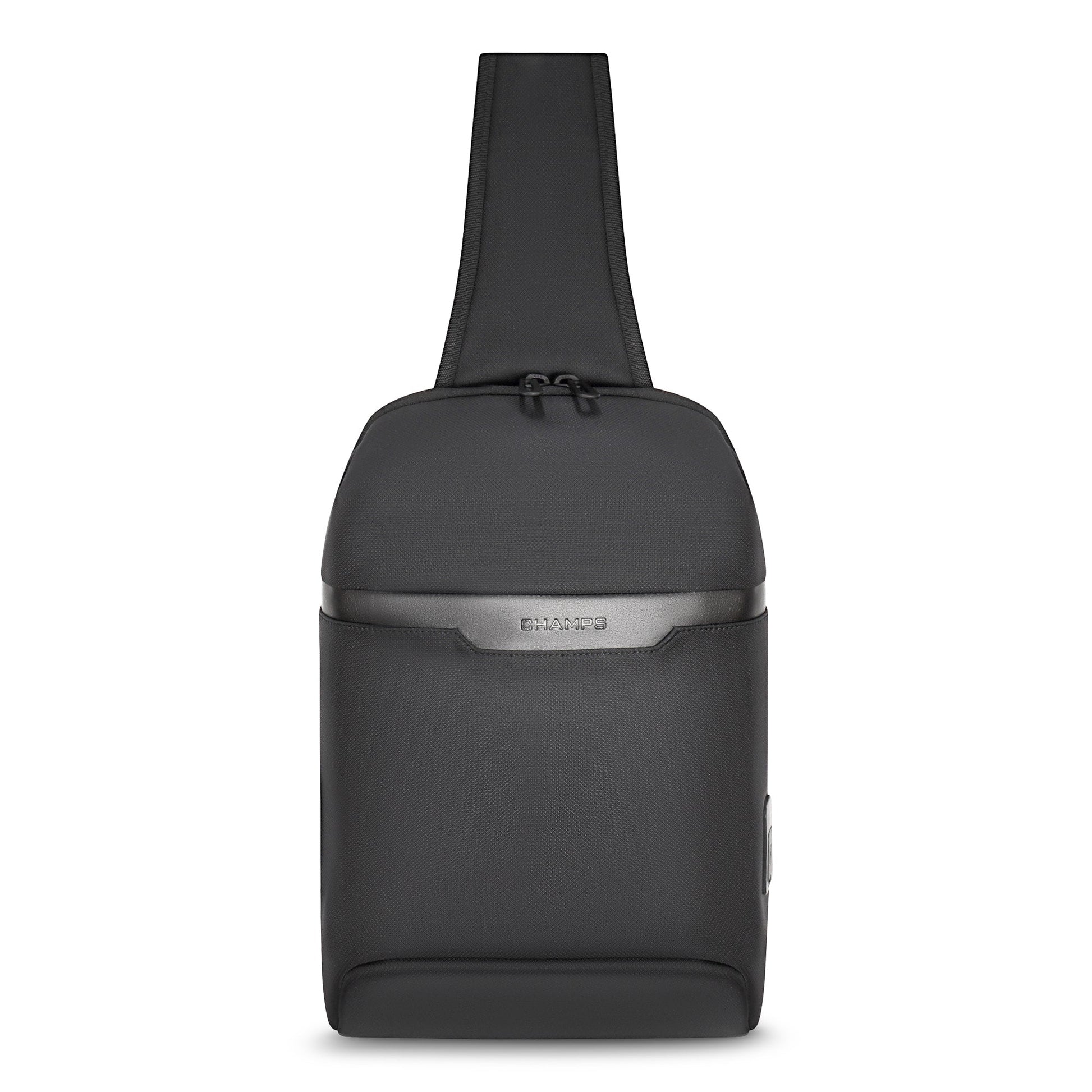 Introducing the Sling Bag from the Onyx Collection, designed for the modern individual on-the-go, perfect for carrying daily essentials, tech gadgets, and travel documents effortlessly. Crafted with premium water-resistant nylon material to offer both durability and sleek style. This versatile bag is designed to keep you organized and secure, featuring a specialized RFID pocket to protect your sensitive information from digital theft. The padded tablet sleeve ensures your device stays safe and protected, making it the perfect companion for both work and leisure. With a built-in USB-C charging port, you can easily stay powered up and connected while on-the-go. One of the standout features of the Champs Sling Bag is its reversible strap, allowing for convenient crossbody wear that adapts to your needs. Whether you're navigating a busy city or exploring new destinations, this ergonomic design provides comfort, flexibility, and the ability to carry all your daily essentials in one compact bag.