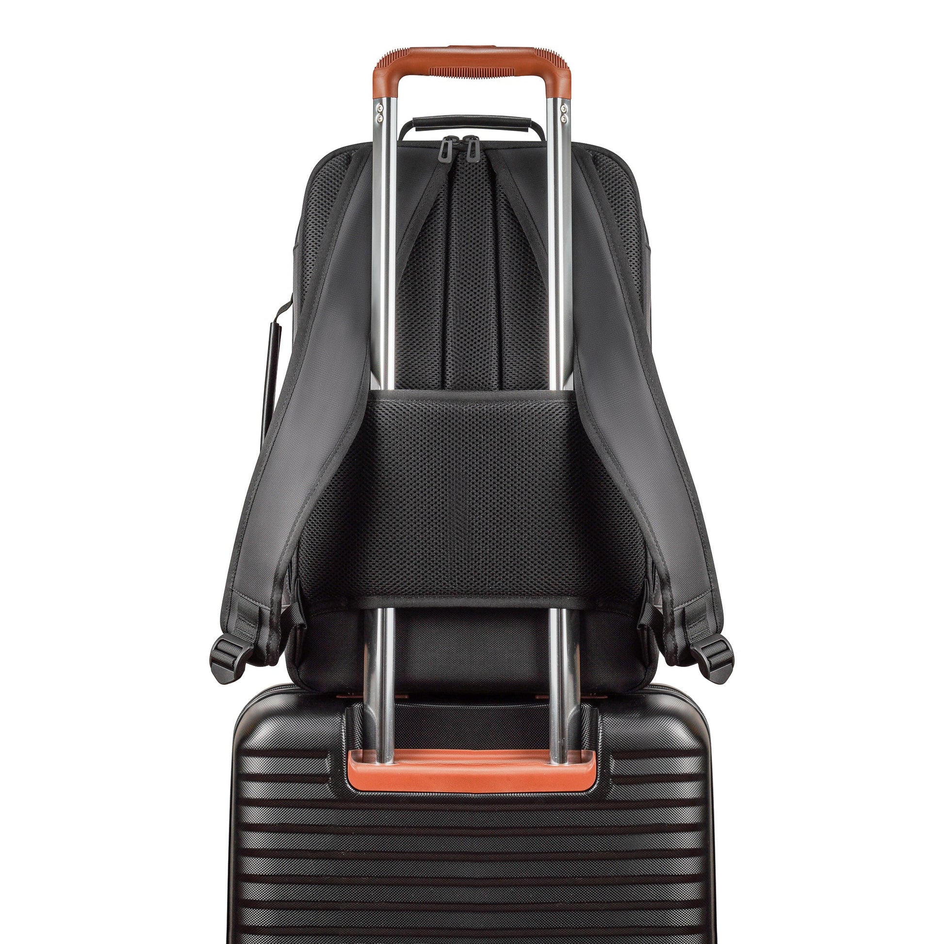 The Travel Backpack from the Onyx Collection is designed for travelers who value versatility and functionality. Crafted from water-resistant nylon material, this backpack ensures your belongings stay safe and dry, regardless of the weather conditions you encounter on your journey. Equipped with a built-in RFID pocket, your personal information remains secure, while the adjustable air-mesh shoulder straps provide customizable comfort, making long journeys a breeze. The backpack features a spacious single compartment, offering ample room to organize your essentials efficiently. Perfect for both urban explorations and outdoor adventures, it also boasts convenient top and side carry handles for versatile carrying options. Navigate through bustling airports or rugged terrains with ease by attaching your backpack to your suitcase with the trolley strap, and benefit from the hidden zippered pocket for added security of your valuables. Stay hydrated throughout your travels with the side stretch/water bottle pocket. With its practical features and sleek design, the Travel Backpack from the Onyx Collection elevates your travel experience, combining functionality with style for the modern explorer. Oh, and by the way, this bag has enough room to carry a traditional carry-on's worth of contents for those who prefer to travel light.